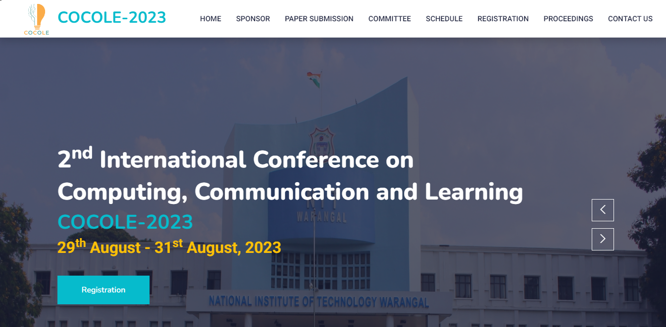 The Fifth International Conference on Computing, Communication and Learning (COCOLE)-2026 will be organized by National Institute of Technology, Raipur, Chhattisgarh, India during September 2nd - September 4th, 2026.
